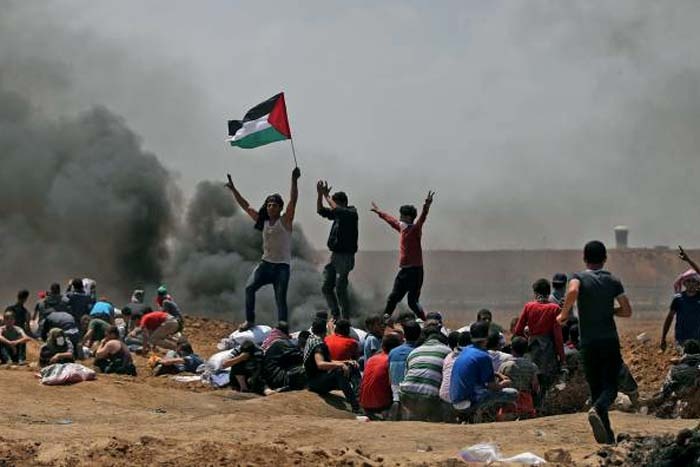 Milhares de palestinos se reuniram nesta segunda em diversos pontos próximos à fronteira e pequenos grupos se aproximaram da cerca de segurança vigiada por soldados israelenses.