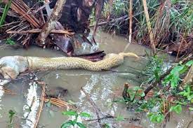 Sucuri morre engasgada ao tentar comer cachorro, em Tocantins