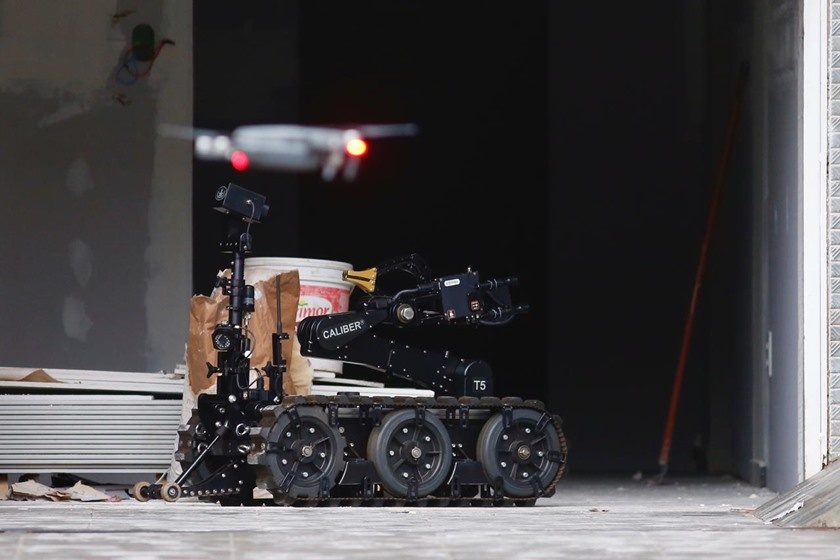 O local foi isolado e integrantes do Batalhão de Operações Especiais (Bope) estão no local para verificar se há explosivos dentro da mala. Robôs e homens com uniformes próprios para manusear objetos explosivos estão no local.