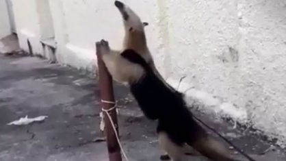 Tamanduá amarrado em poste é resgatado pela polícia do Rio