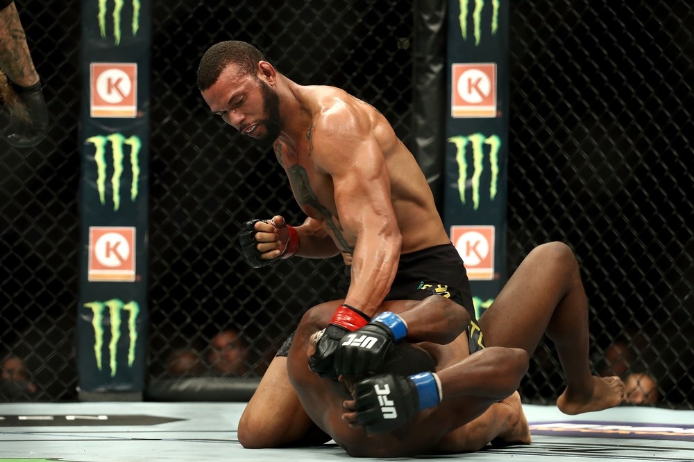 Thiago Marreta castiga Kevin Holland no card principal do UFC 227 (Foto: Getty Images)