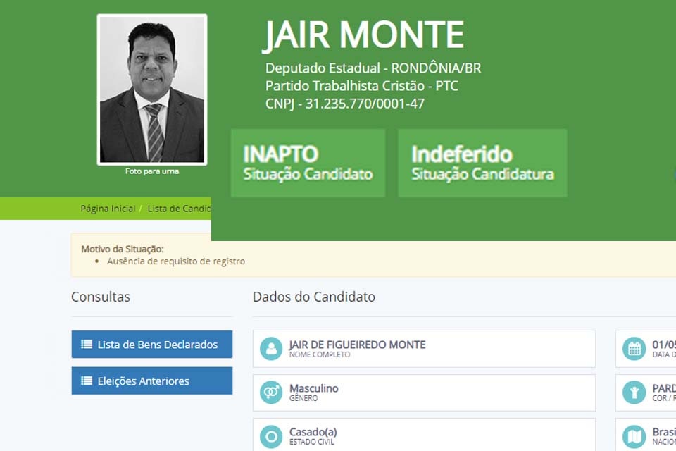 Porto Velho, RO – O Tribunal Regional Eleitoral (TRE/RO) negou, à unanimidade, o pedido de registro de candidatura do vereador Jair Montes (PTC) a deputado estadual por Rondônia.