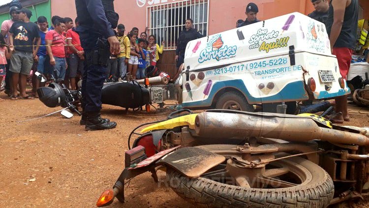 Dois suspeitos fugindo da Polícia Militar se envolveram em um grave acidente de trânsito no final da manhã desta sexta-feira (12), na Rua Aruba com Rua União, bairro Socialista, zona Leste de Porto Velho. O apenado monitorado por tornozeleira eletrônica, Cristiano P. S., e o foragido Renato A. S., ambos maiores de idade, foram presos armados com um revólver calibre 38. A colisão envolveu 5 motocicletas e deixou pelo menos quatro feridos.