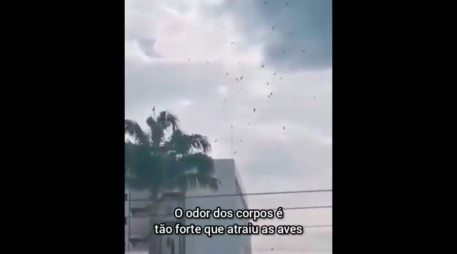 Após resgate de mais de 150 corpos dentro de casas na cidade por uma força-tarefa, equatorianos filmaram urubus sobrevoando um dos dos hospitais da cidade, atraídos pelo forte cheiro dos cadáveres.