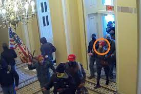 Imagens de câmeras de segurança do Capitólio, edifício-sede do Poder Legislativo dos Estados Unidos, mostram o momento em que a brasileira Letícia Vilhena Ferreira participa da invasão ao prédio ao lado de centenas de pessoas.
