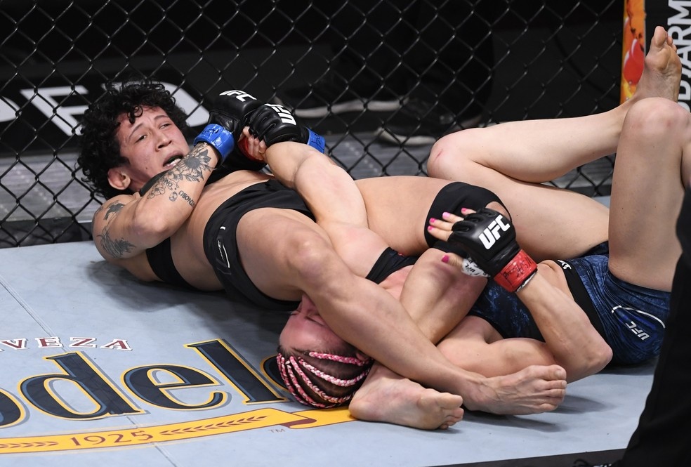 Virna Jandiroba estica o braço e finaliza Felice Herrig — Foto: Getty Images
