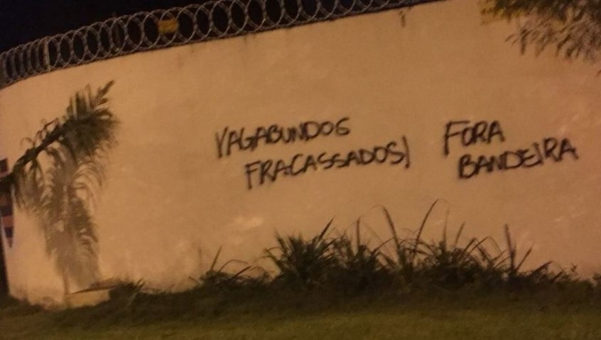 Novamente, o principal alvo dos vândalos foi o presidente Eduardo Bandeira de Mello. "Vagabundos fracassados" e "Fora Bandeira" foram algumas das pichações.